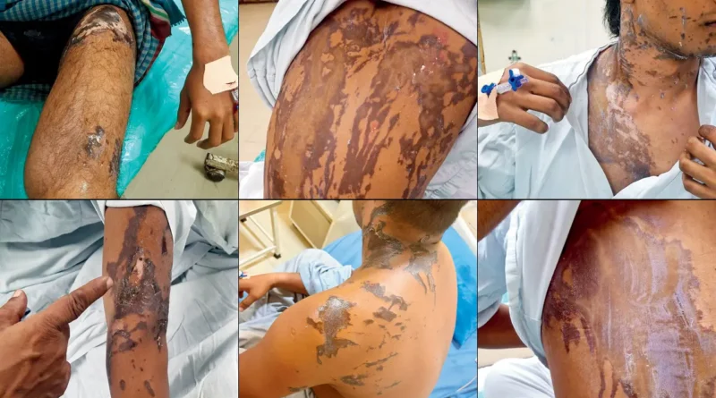 अफरा-तफरी के दौरान, वर्कशॉप के मालिक ने नकली गहनों को चमकाने के लिए इस्तेमाल होने वाला तेजाब का डिब्बा उठाया और उसे दूसरे समूह पर फेंकने की कोशिश की। इसके बाद हुई हाथापाई में, डिब्बे से तेजाब छलक गया, जिससे वहां मौजूद लगभग सभी लोग तेजाब से जल गए।